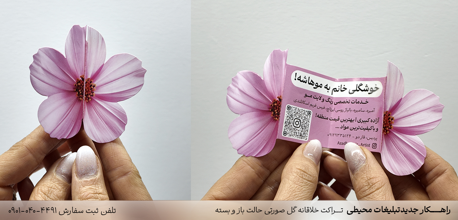 این تراکت های خلاقانه در شرایط کنونی (محدودیت در دسترسی به فضای مجازی علی الخصوص اینستاگرام) برای جذب مشتری بسیار اثرگذار است، نحوه پخش آن بدین صورت است که لای آیینه ماشینها، درب منازل و هر کجا که درزی وجود دارد قابل نصب است (بدون نیاز به چسب) بعد از باز شدن تراکت اطلاعات کسب و کار شما برای ببنده نمایش داده میشود. هر چهار طرح را در حالت های بسته و باز میتوانید در ویدیو زیر مشاهده کنید